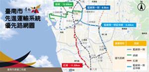 臺南市政府為打造優質、便利及安全的公共運輸,先務實的執行6年期「捷運化公共運輸」政策,改革公車培養基礎運量,同時著手規劃符合府城特性的先進運輸系統,其中,「臺南市先進運輸系統第一期藍線可行性研究報告」經歷市府多次審議,去年提送交通部、國發會審議,今(28)日獲行政院正式核定,後續將啟動綜合規劃作業。